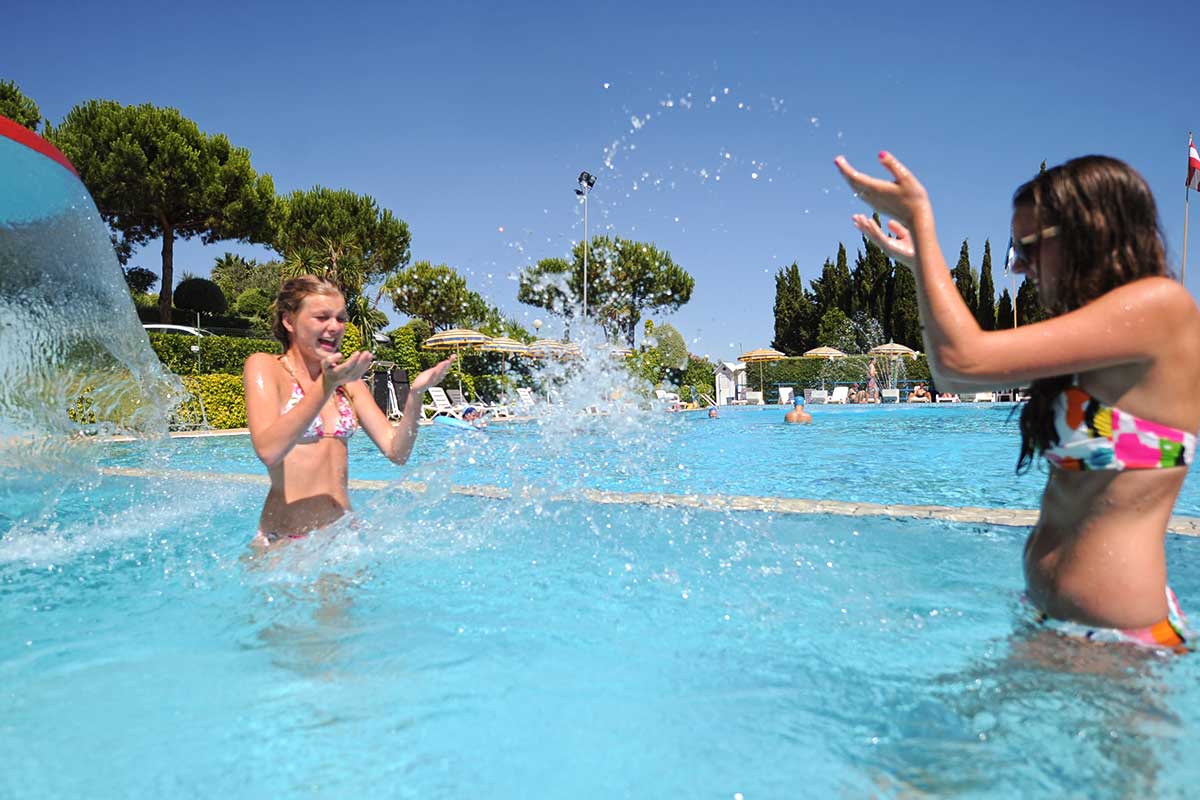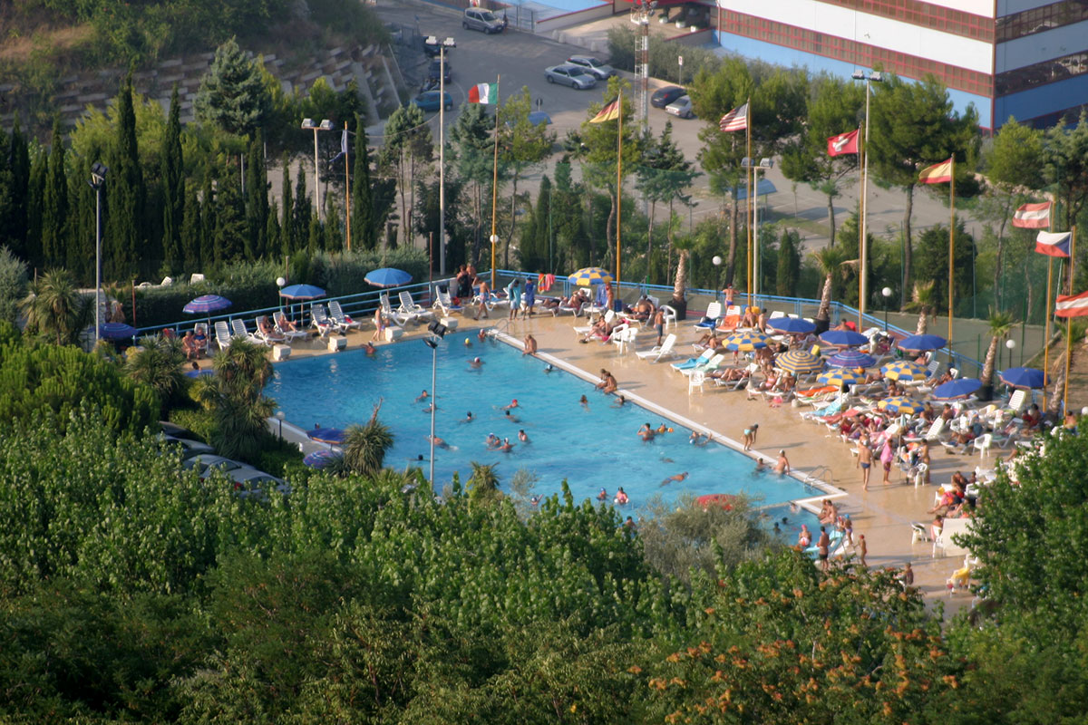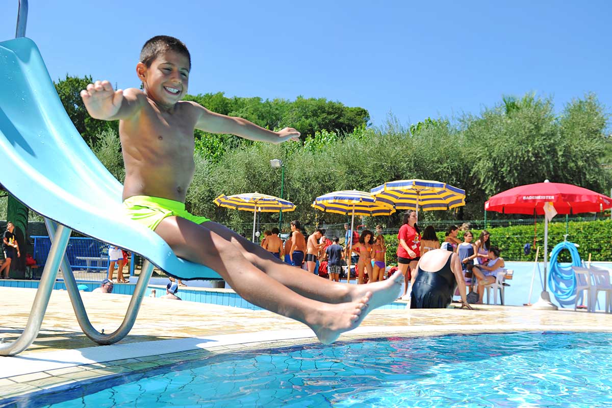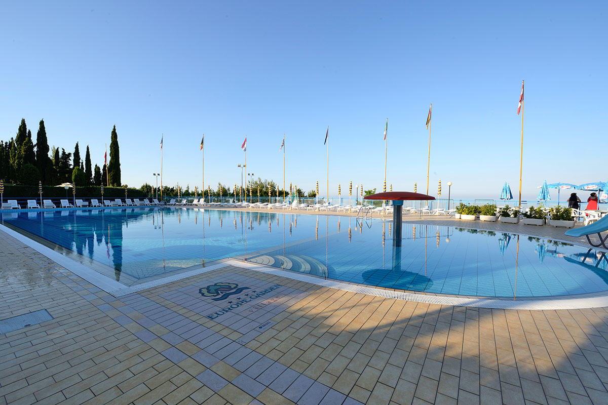 La zona piscine comprende un gran numero di attrezzature e vi si svolgono numerose attività per grandi e piccini. Il pomeriggio, dopo una mattinata in spiaggia, è piacevolissimo sdraiarsi sui lettini del solarium o sul materassino con gli occhi che si perdono all’orizzonte sul mare accarezzati dalla brezza marina. Il fungo e l’idromassaggio accontentano mamme e bambini. Nella grande piscina semiolimpionica (25 x 12,5 metri) di acqua dolce filtrata e il fondo di varie profondità si può fare veramente di tutto: praticare il nuoto più classico, lasciarsi cullare dall’acqua, giocare con gli amici, tuffarsi dai blocchi di partenza o dal trampolino per risalire poi dalle apposite scalette. Per i più piccoli le attività motorie e ricreative si svolgono sotto l’occhio attento di personale preparato dello Staff o dei genitori nell’apposita piscina appositamente studiata solo per loro.
